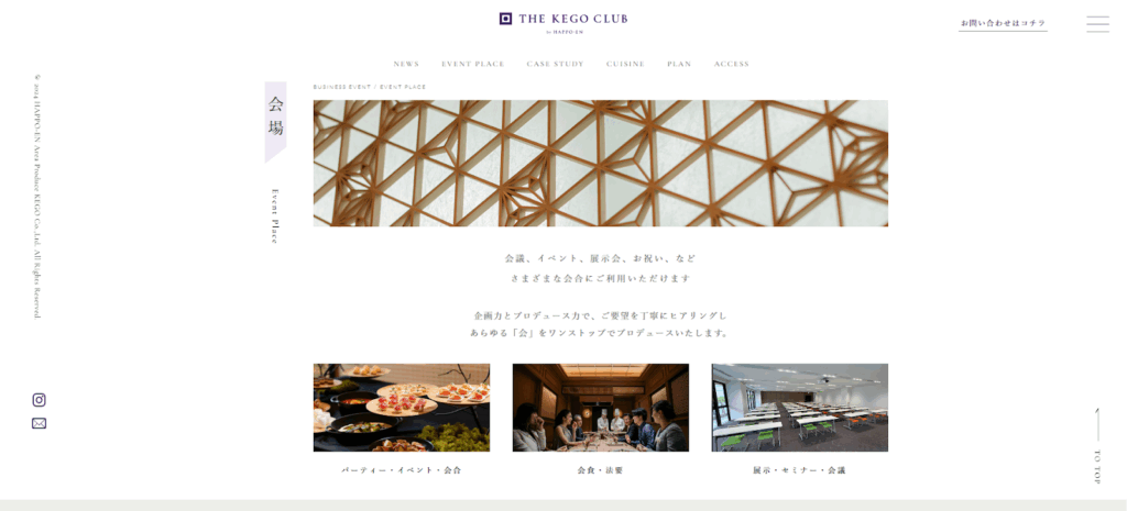 | 公式サイト | https://www.happo-en-kego.com/business/banquet |