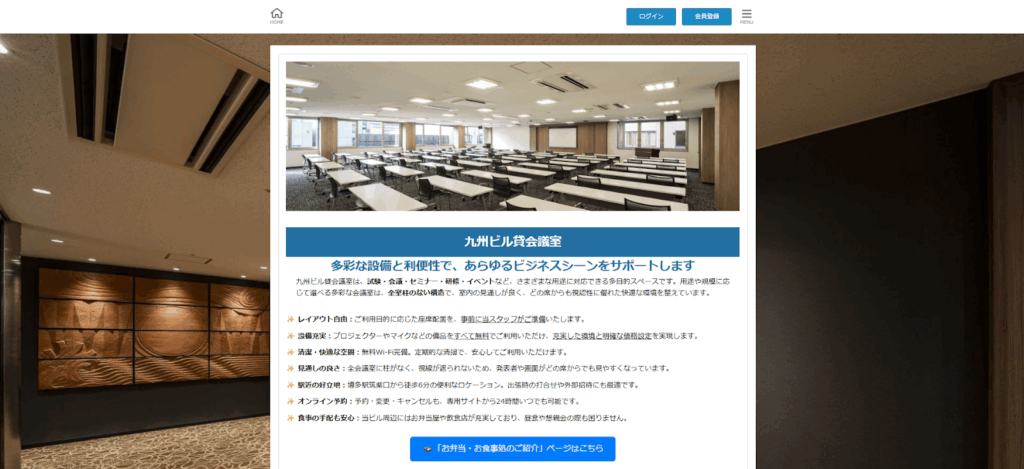 | 特長 | 多室構成・柔軟なレイアウト対応・駅近施設・日祝割増あり・複数規模対応可 |