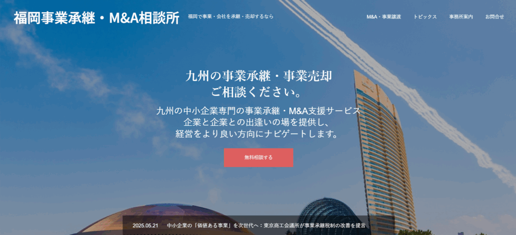また、福岡県事業承継・引継ぎ支援センターとも連携しており、公的支援も取り入れた安心感のあるサービスを提供。地元企業の「想い」を尊重した伴走支援が強みです。