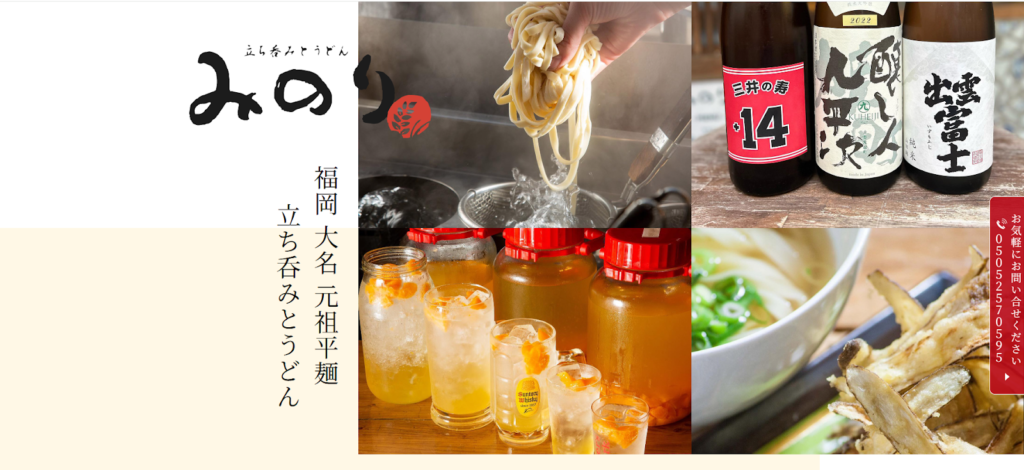 福岡・大名で“飲んで、〆まで”を一軒で完結できるのが「立ち呑みとうどん みのり」です。立ち飲みスペースでお酒とおつまみを楽しんだ後、讃岐風の自家製うどんで〆るというユニークなスタイルが話題。