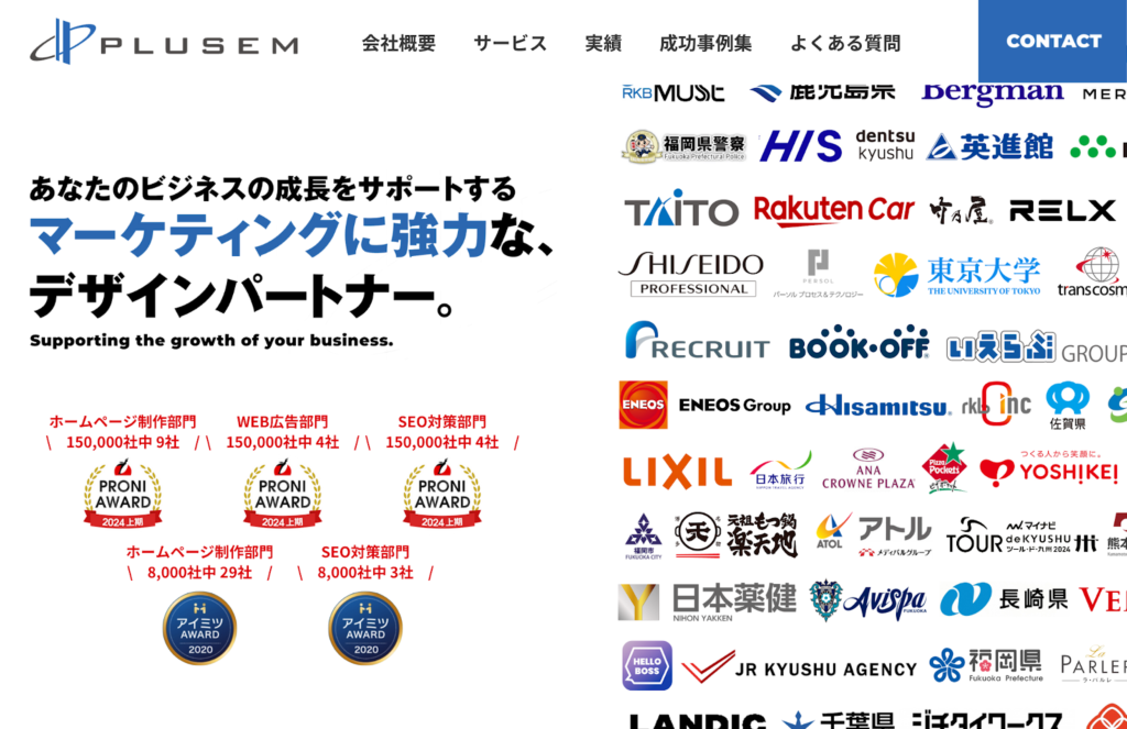 こうした体制を支えているのが、外部からの認定と幅広い支援実績です。株式会社プラセムは、Google Premier Partnerに認定されているほか、Yahoo!特別認定パートナーやMeta Business Partnerにも選ばれています。広告や集客領域の知見を持ちながらWEB制作に落とし込める点は、同社の信頼性を示す材料のひとつです。