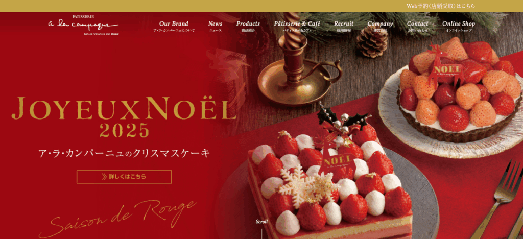 焼き菓子の定番「フィナンシェ」や「マドレーヌ」が有名ですが、クリスマスシーズンには華やかなホールケーキが多数ラインナップされます。