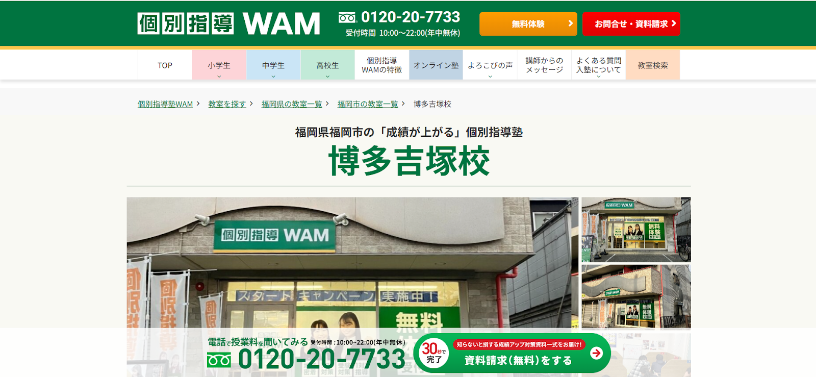 | 店舗名 | 個別指導塾WAM 博多吉塚校 |