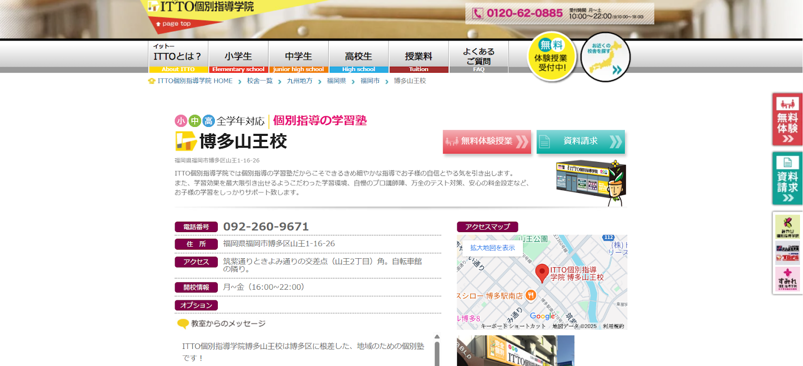 | 店舗名 | ITTO個別指導学院 博多山王校 |