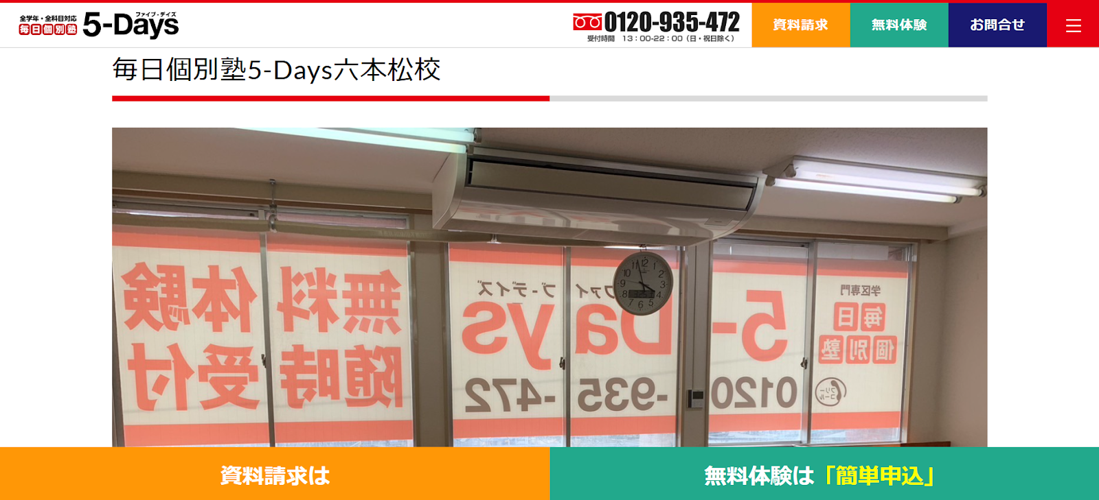 | 店舗名 | 毎日個別塾 5‑Days 六本松校 |