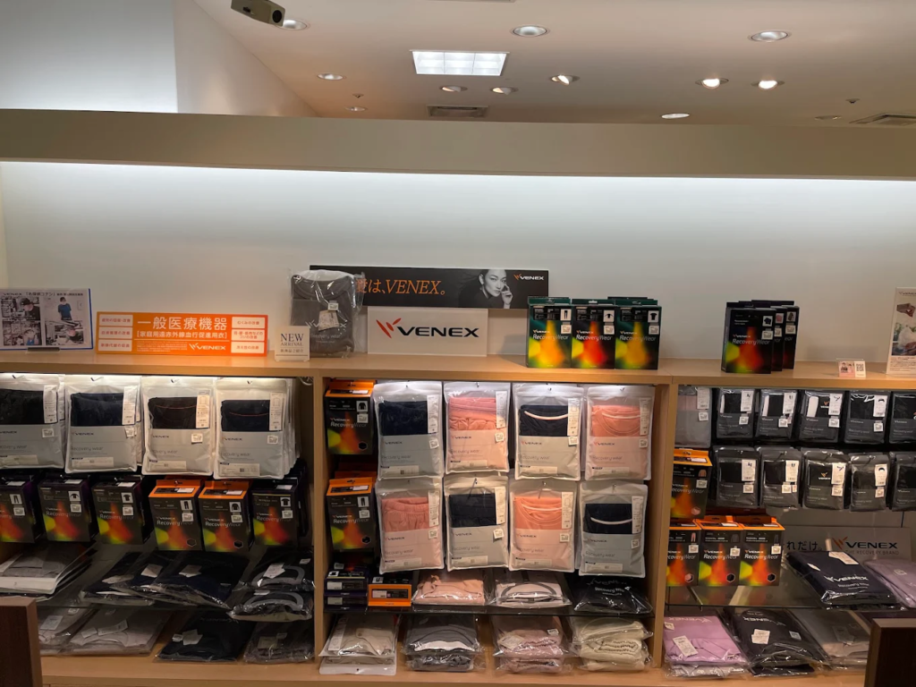 岩田屋の初売りで「体をいたわる買い物」をしたい人に注目してほしいのがベネクスです。リカバリーウェアの専門ブランドとして知られ、独自素材を使ったウェアは着用時の快適さを重視した設計が特徴。