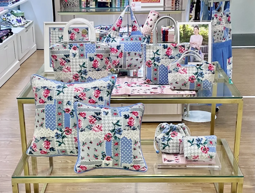 岩田屋の初売りで毎年安定した人気を集めるのが、ドイツ発のシュニール織ブランド・フェイラーです。厚みのあるやわらかな質感と、発色の美しいデザインが特徴で、ハンカチやポーチなど日常使いしやすいアイテムが揃います。