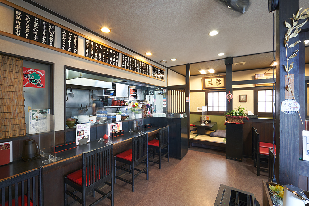 カウンター、テーブル、座敷席が用意されており、家族連れにも利用しやすい環境。駐車場も完備されているため、車での来店も安心です。国道3号線沿いという立地の良さも相まって、年末の一杯にふさわしい実力派の一軒です。