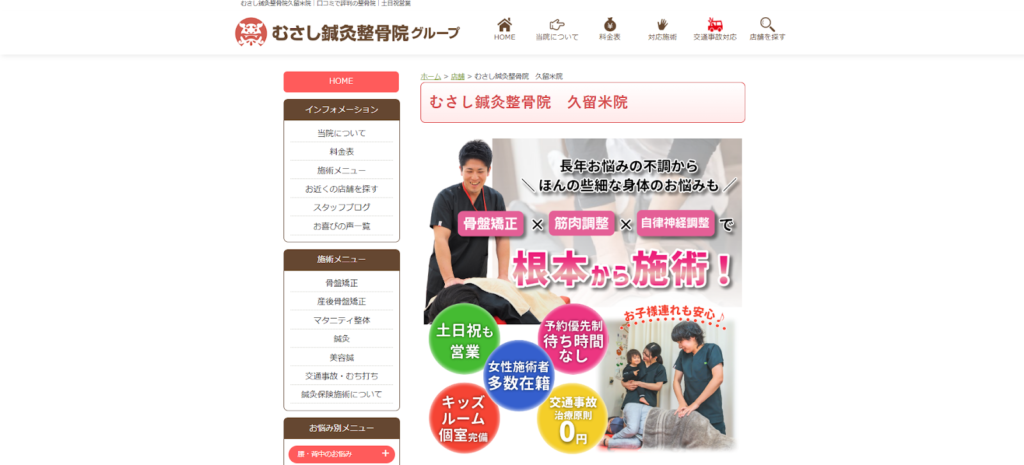 | 店舗名 | むさし鍼灸整骨院 久留米院 |