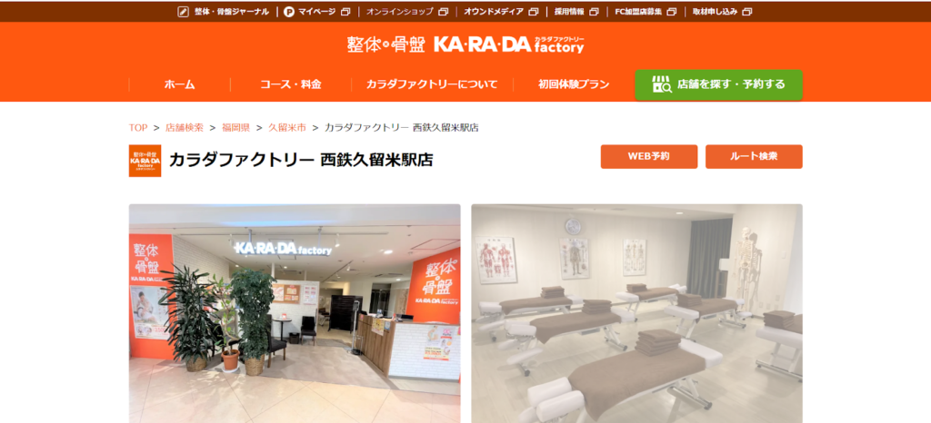 | 店舗名 | カラダファクトリー 西鉄久留米駅店 |