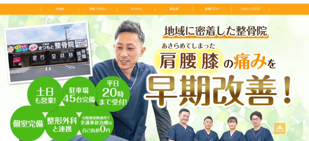 くるめまつもと整骨院は、地域密着型の整骨院として地元住民から高い信頼を得ている整体院です。