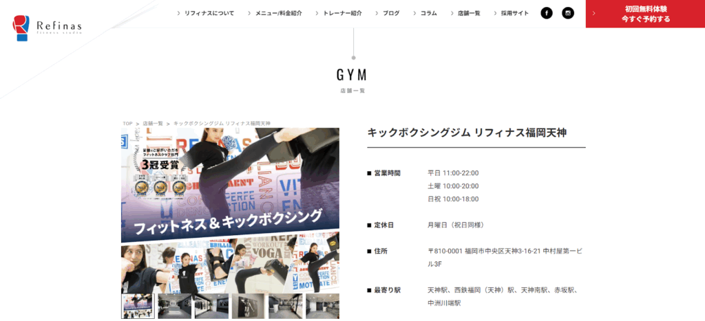 | 公式サイト | https://refinas.jp/gym/fukuoka/ |