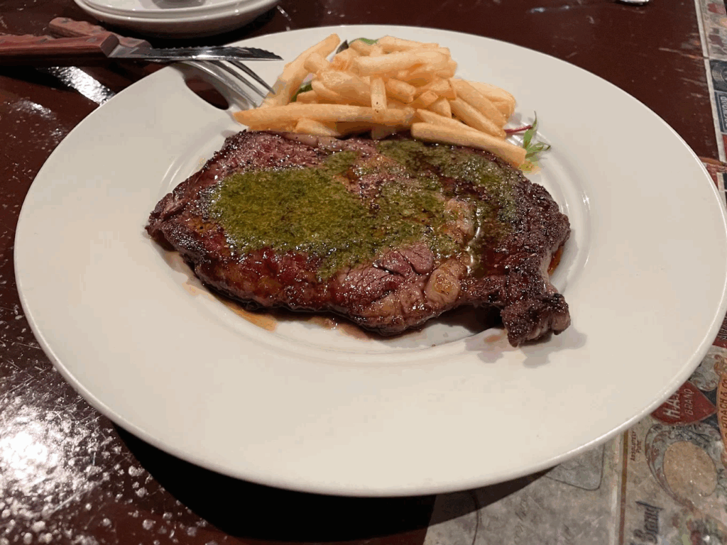 料理は、NYスタイルの豪快なグリル料理やボリューム満点の1ポンドステーキなど、満足感たっぷりの内容。店内はほどよく暗く、キャンドルの明かりが映えるロマンチックな雰囲気も魅力のひとつです。