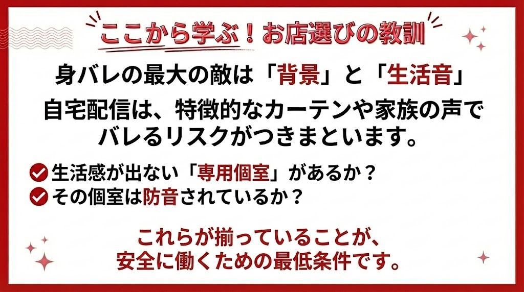 「親や彼氏にバレたくない」。これが最大の懸念点です。