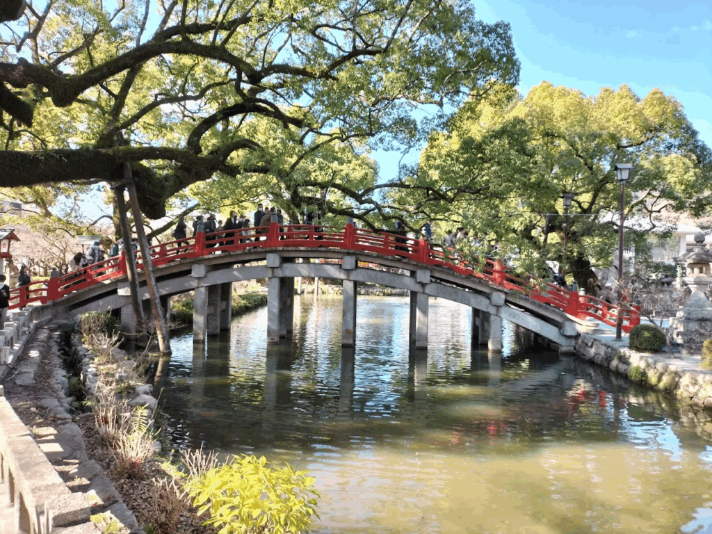 境内には、都から道真公を慕って飛んできたとされる“飛梅”の伝説も残り、梅の季節には美しい香りが広がります。学問・文化・芸術・厄除けのご利益があるとされ、合格祈願や厄払いなど幅広い目的で多くの参拝者が訪れます。