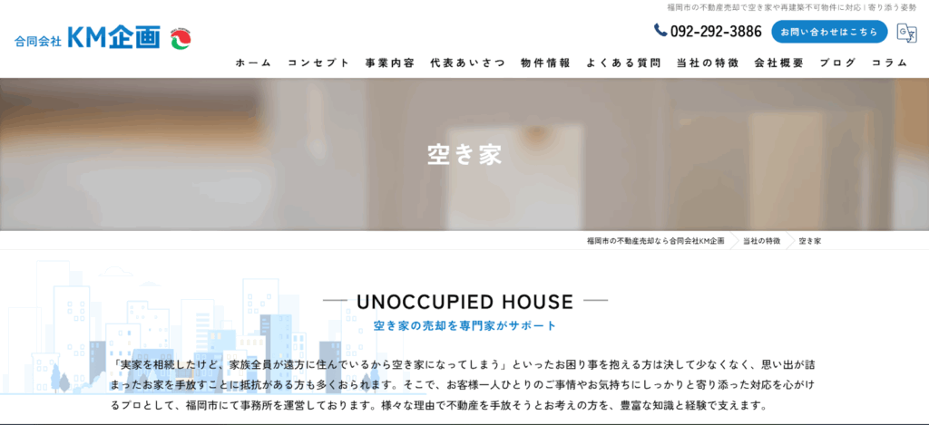 合同会社KM企画は、福岡市博多区を拠点に、空き家の売却・活用・管理まで幅広く対応する地域密着型の不動産会社です。