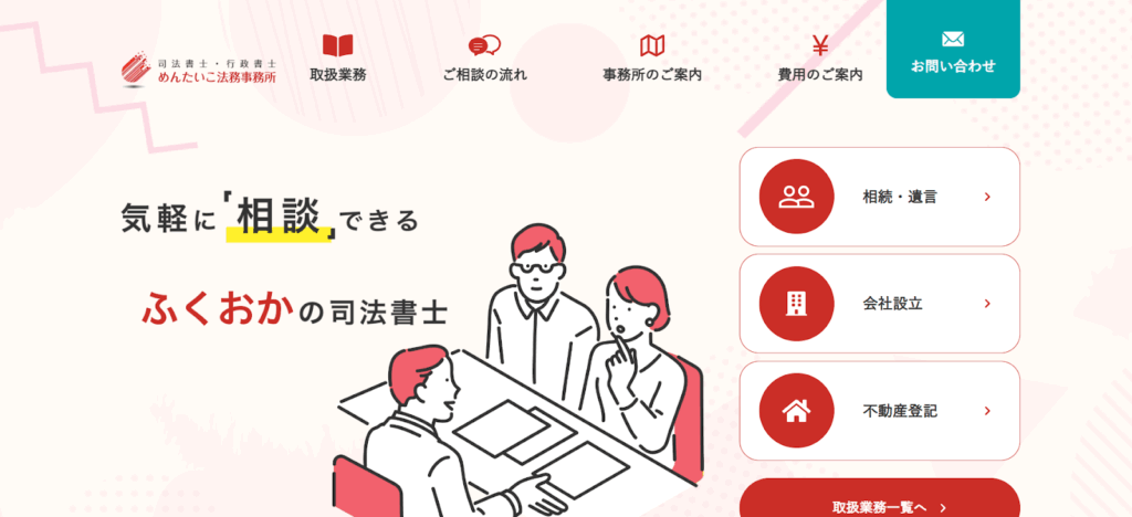 | 店舗名 | 司法書士・行政書士 めんたいこ法務 |
