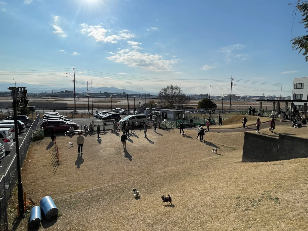 空港近くという好立地が魅力の「博多の森ドッグパーク」は、福岡市博多区に位置する人気の屋外ドッグランです。敷地内には700㎡超の広々とした芝生エリアがあり、愛犬が思いっきり駆け回れる環境が整っています。