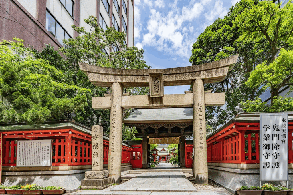 福岡市中央区の「天神」エリアにひっそりと佇む水鏡天満宮は、繁華街の喧騒を離れて訪れる静かな祈りの場です。主祭神として学問の神・菅原道真を祀り、「天神」の地名の由来となったとも伝えられています。