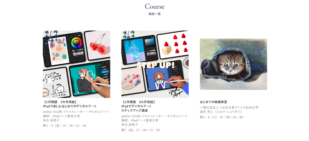 また、定期講座だけでなく、気軽に受講できる1日講座なども開催されており、ライフスタイルに合わせて柔軟に参加できるのも魅力の一つ。上質な空間で自分磨きをしたい方におすすめの絵画教室です。