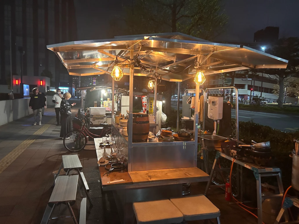天神の街中でアクセスも良く、1軒目でしっかり食べ飲みするのも、二軒目で軽くつまむのもOK。屋台スタイルは天候で雰囲気が変わるのも醍醐味なので、季節の空気ごと楽しんでみてください!