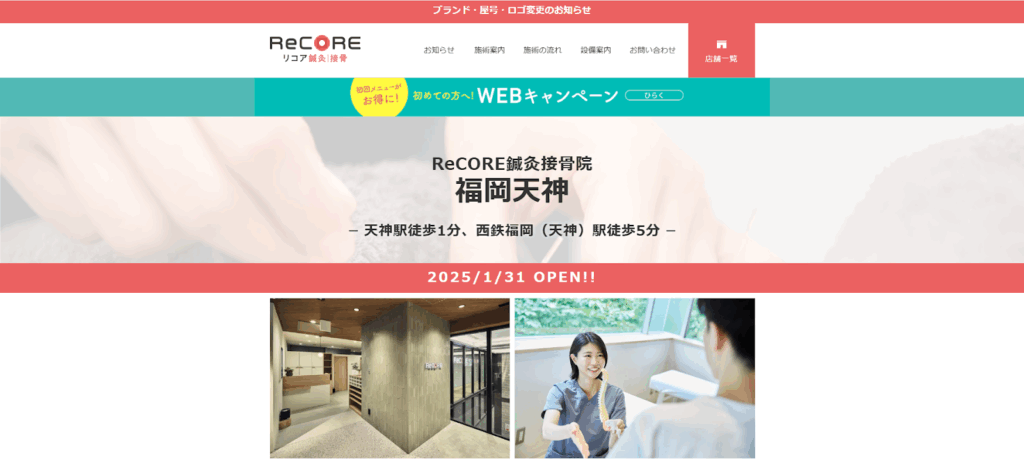 | 店舗名 | ReCORE鍼灸接骨院 福岡天神 |