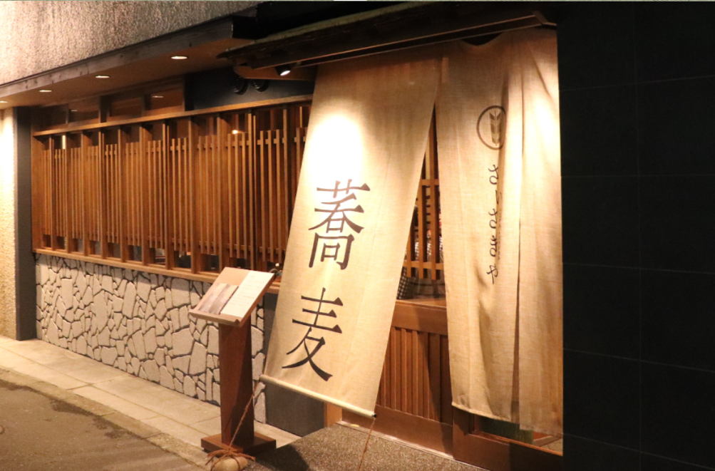福岡市中央区・荒戸にある「蕎麦 木曽路」は、駅近とはいえ落ち着いた住宅街の一角に佇む名蕎麦店です。店主が「そば鑑定士1級」の資格を持ち、全国の生産者から厳選した玄蕎麦を店内の石臼で自家製粉。