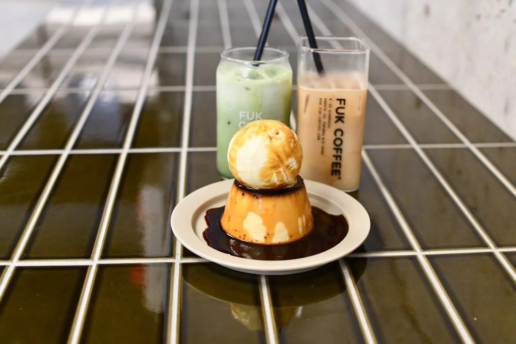 博多のカフェシーンで話題を集める「FUK COFFEE」は、洗練された空間と旅をテーマにしたユニークな世界観が魅力のカフェ。看板メニューはコーヒーですが、実はスイーツにもこだわりがあり、季節限定で登場するプリンが密かな人気を誇ります。