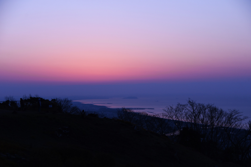 元旦の朝、まだ暗い時間から登り始めると、徐々に空が明るくなり、東の空から昇る太陽が山々と海を黄金色に染めていく光景は圧巻です。自然に囲まれた静かな空間で新年を迎えることで、日常の喧騒を忘れ、心をリセットすることができます。