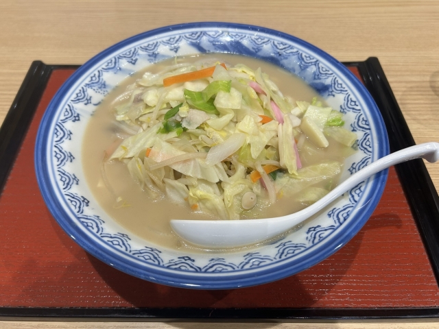 野菜の旨味と豚骨のコクが絶妙に合わさったスープは、見た目よりもあっさりとした後味で、最後の一滴まで飲み干したくなる味わいです。野菜たっぷりでボリュームもありながら、女性客にも人気なのが納得の一杯。