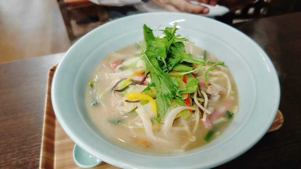 ちゃんらーとは、ちゃんぽんとラーメンの“いいとこ取り”をしたようなご当地グルメで、あっさり豚骨ベースのスープに中細麺、野菜や海鮮の旨みが詰まった逸品です。見た目はシンプルながら、一口すすると旨味の層が広がり、他では味わえない満足感。