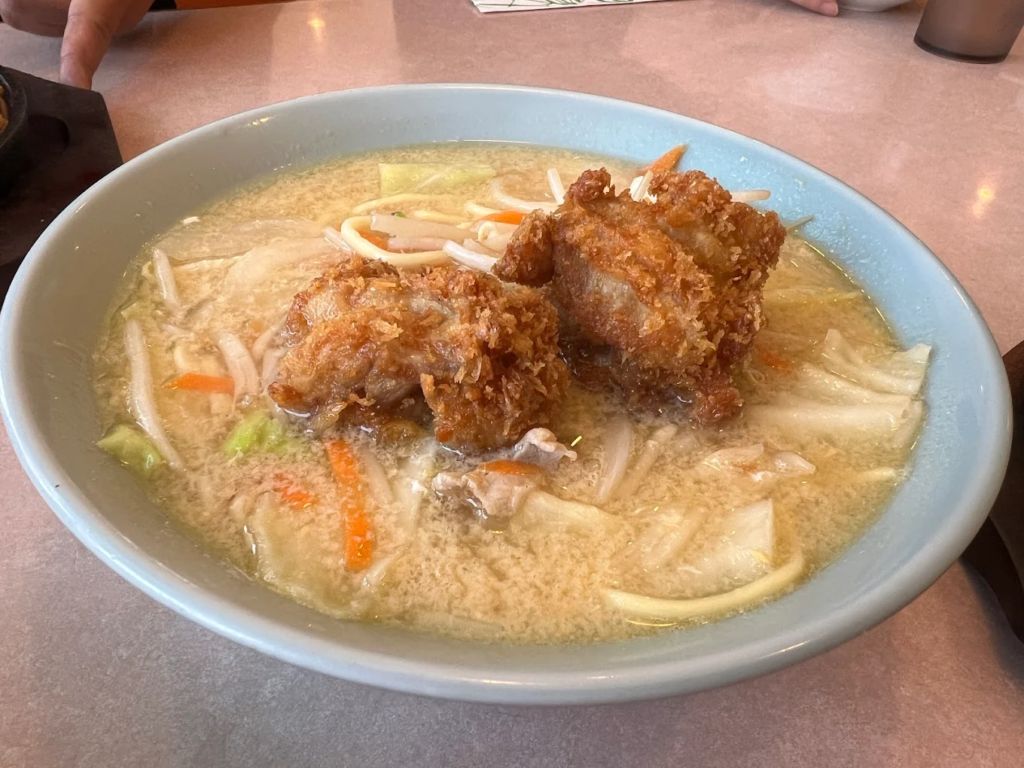 あっさりめの豚骨スープと、シャキシャキ野菜、しっかり味のカツが絶妙にマッチし、見た目のインパクトだけでなく味でもしっかり満足感を与えてくれます。
