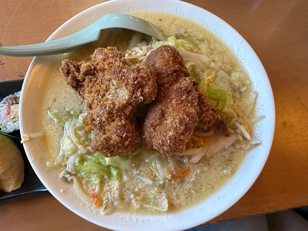 具材の旨みがスープに溶け出し、最後まで飲み干したくなるおいしさです。唐揚げやチキンカツなど、他メニューとの組み合わせも充実しており、ちゃんぽん好きもガッツリ派も大満足!