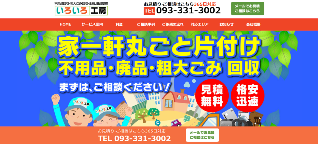 「いろいろ工房」は、北九州市門司区を拠点に活動する不用品回収・遺品整理サービスの専門業者です。個人宅の片付けからゴミ屋敷の清掃、大型家具の搬出まで、家庭内のあらゆる“片付けたい”をサポートしてくれます。