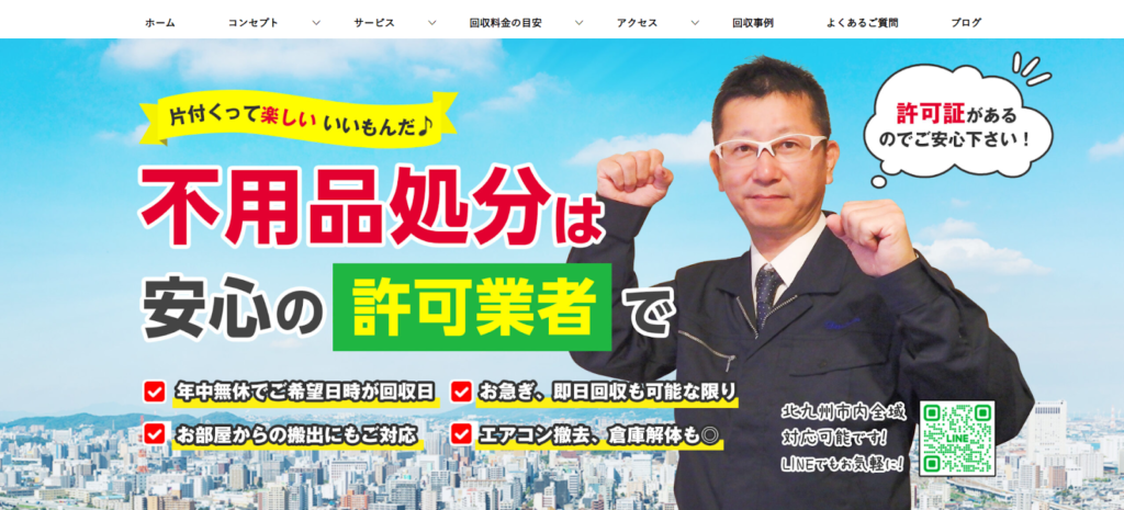 特に注目すべきは、見積もりから回収までのスピード対応と明朗会計。LINEでの見積もり依頼も可能で、初めての方でも安心です。