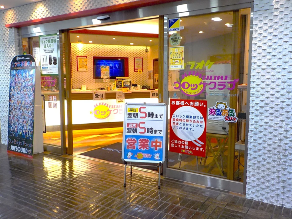 カラオケ コロッケ倶楽部 あるあるCity店は、JR小倉駅から徒歩すぐ、ショッピング施設「あるあるCity」地下にあるアクセス抜群のカラオケボックス。深夜から早朝まで、最大朝5時まで営業しており、終電後や2次会、時間を気にせず歌いたいときに最適です。
