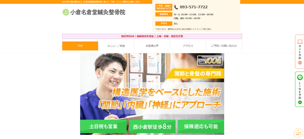 | 店舗名 | 小倉名倉堂鍼灸整骨院 |