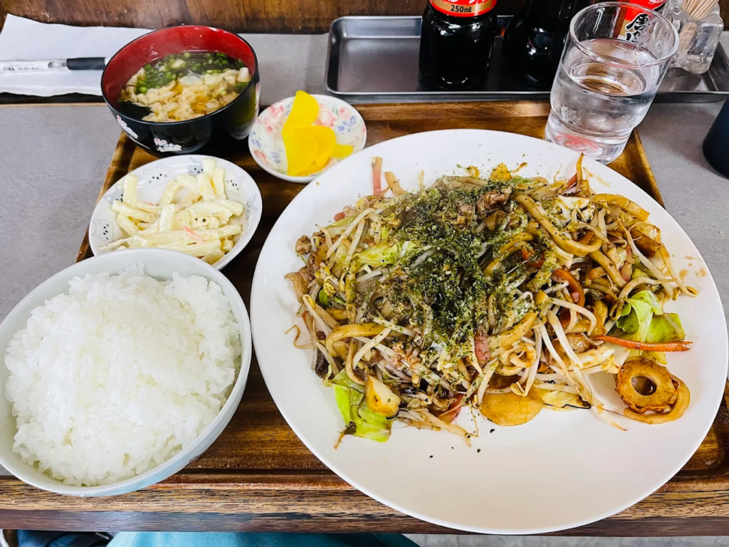 食べごたえがありながら、どこかほっとする“おふくろの味”のような安心感があり、一度食べたらまた食べたくなる焼きそばです。店内では定食スタイルでも提供されており、地元の常連客にも長年愛されている名店です。