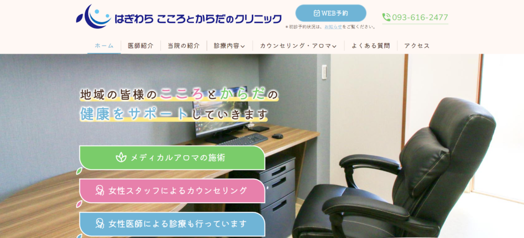 はぎわら こころとからだのクリニックは、北九州市八幡西区・萩原にある心療内科・精神科・内科の複合クリニックです。筑豊電鉄「萩原駅」から徒歩約5分とアクセスも良く、駐車場も完備されているため車での来院も安心。
