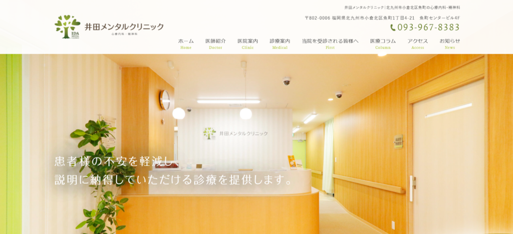 井田メンタルクリニックは、北九州市小倉北区・魚町エリアに位置する精神科・心療内科クリニックです。小倉駅や平和通駅から徒歩圏内という通いやすい立地にあり、仕事や学校帰りでも無理なく受診しやすい環境が整っています。