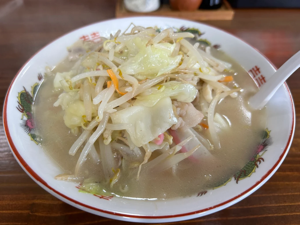 野菜もきちんと入っていて、食べ終わる頃にはしっかり満たされるのに、重たすぎないのが嬉しいポイントです。口当たりはやさしめで、レンゲを進めるほどにコクが広がるタイプなので、濃厚すぎるちゃんぽんが苦手な人にも向きます。