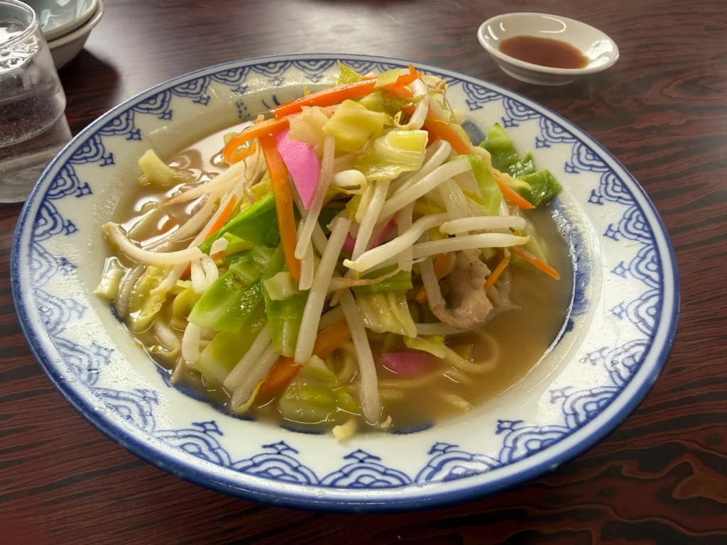 地元の人にとって“いつものごはん処”になっている、頼れる町の食堂です。安さん食堂のちゃんぽんは、具材の旨みがスープにじんわり溶け込み、派手さよりも「毎日でも食べられる安心感」が光る一杯。