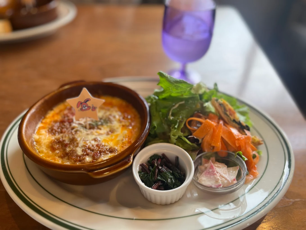 六ツ門町にある「ばった屋」は、ドリアの“チーズの満足感”に加えて、野菜の旨みもしっかり楽しみたい人に合う一軒です。自然野菜を主役にした料理が多く、外食でも「ちゃんと整うごはん」を食べたい日に頼れます。