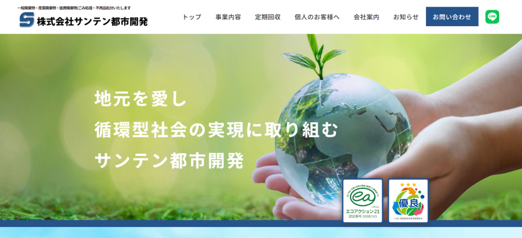 株式会社サンテン都市開発は、久留米市荒木町に本社を構える総合廃棄物処理業者です。一般家庭の不用品回収から、事業系ごみの定期回収、産業廃棄物の収集運搬まで幅広く対応しており、「家庭の片付け」から「企業の廃棄管理」までを一手に引き受けてくれます。