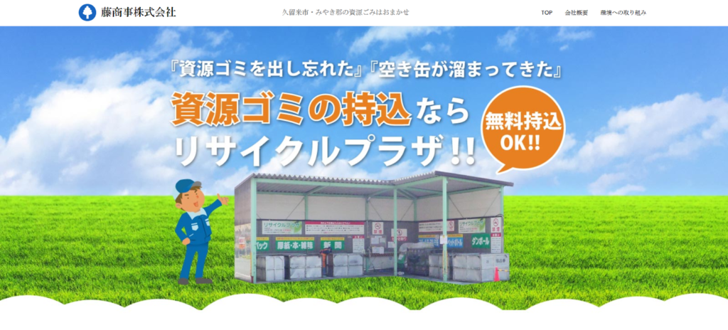 藤商事(株)は、久留米市南に本社を構える老舗のリサイクル業者で、古紙や段ボールなどの資源物回収を中心に、一般・産業廃棄物の収集運搬にも対応しています。創業から長い歴史を持ち、地域密着型の信頼できる企業として地元に根ざしています。