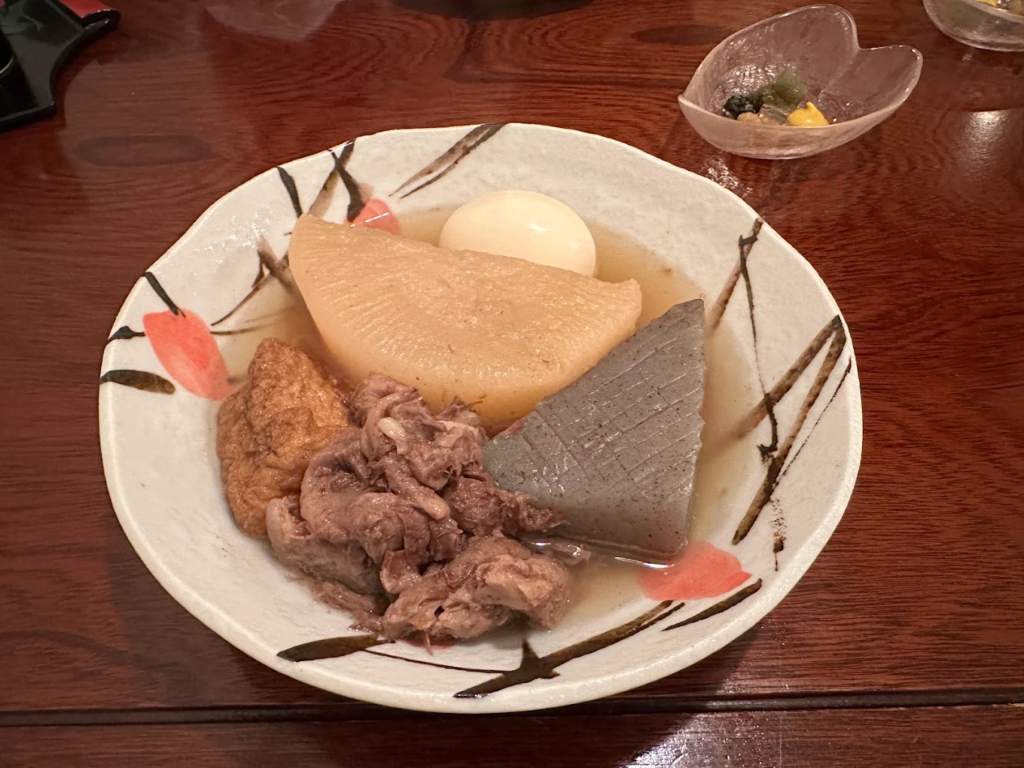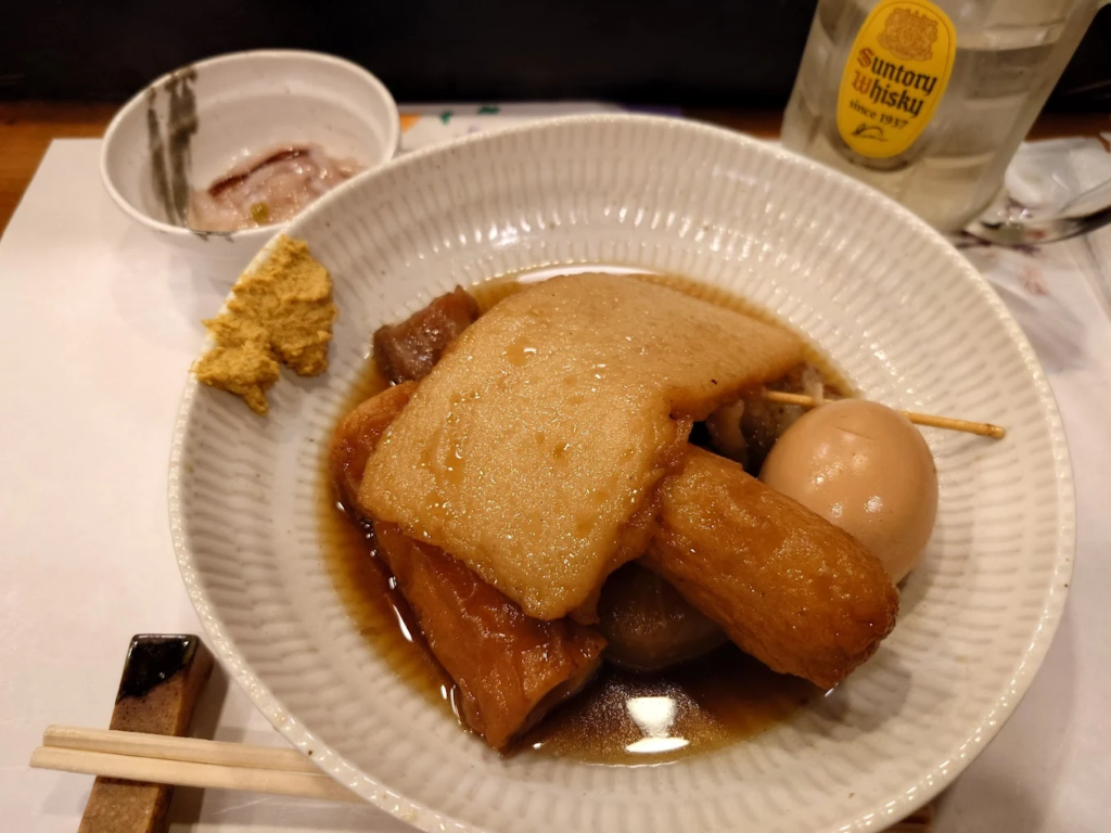 立地的にも使いやすく、友人同士の飲みや、二軒目で“あったかいもの”を入れたいときにもハマります。軽く飲んで帰る日なら、おでんを数品つまんでサクッと。