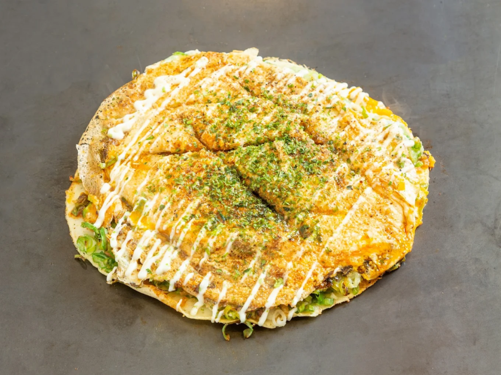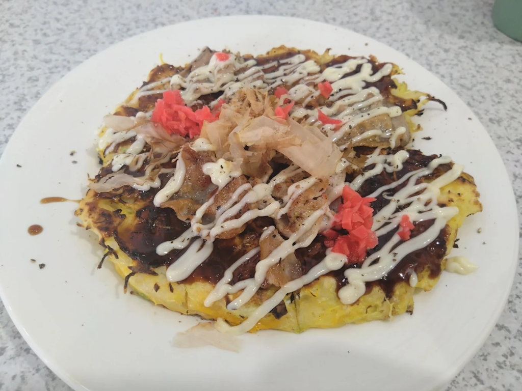 派手さよりも「また食べたくなる安定感」が魅力で、地元で長く親しまれてきた雰囲気が伝わってきます。お腹の具合に合わせて一枚でサクッと満足するのも良し、もう少ししっかり食べたい日は焼きそば系やトッピングでボリュームを調整するのもおすすめ!