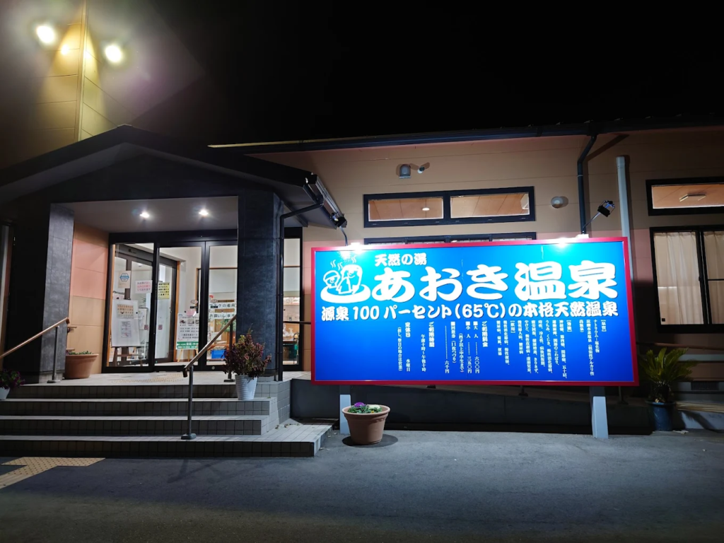 あおき温泉は、久留米市城島町にある地元密着型の天然温泉施設です。源泉100%かけ流しの湯は湯温が高めで、湯冷めしにくく、身体の芯までしっかり温まるのが特徴。