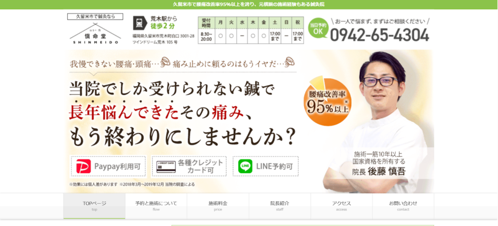 久留米市荒木町にある「慎命堂鍼灸院」は、症状の根本改善を目指す丁寧な施術が魅力の鍼灸院です。