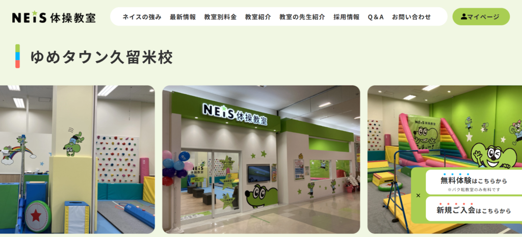 | 店舗名 | ネイス体操教室 ゆめタウン久留米校 |